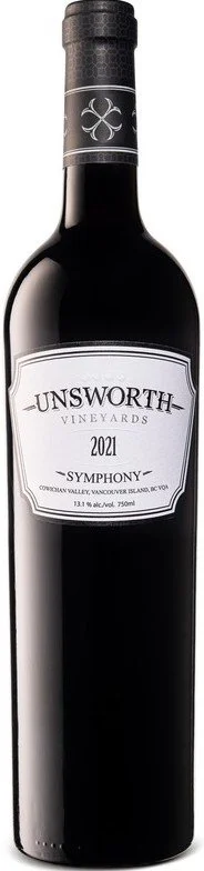 6oz - 14 9oz - 19 BTL - 55Symphony, a distinctive wine style on Vancouver Island, surprises with its ripe and full-bodied character despite our mild climate. Wild berries, currants, dried tobacco, and coastal forest notes on the nose lead to structured tannins, cherries, and exotic spices on the palate. This blend of Cabernet Libre, Labelle, Corivese, and Petit Milo harmonizes into a symphony of flavors.